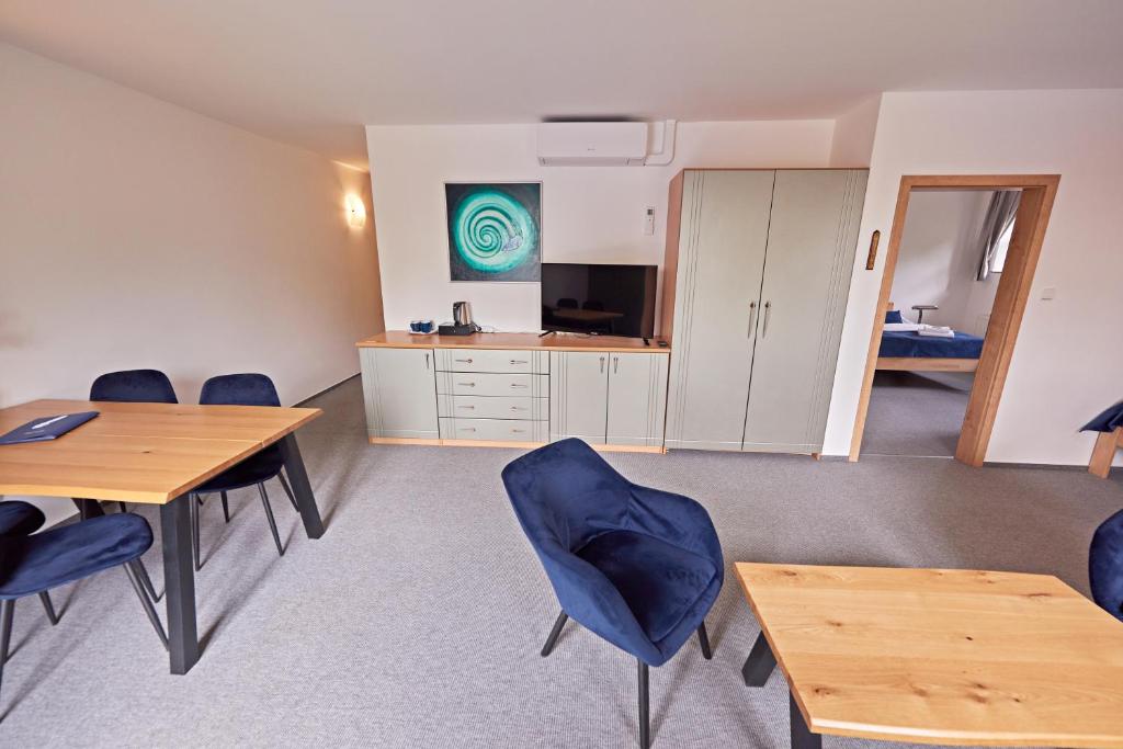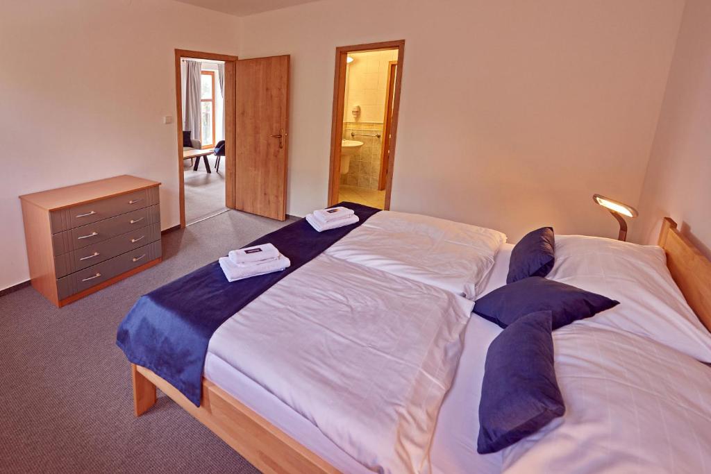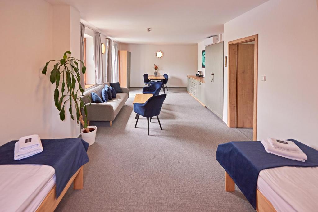 Velmi prostorné a klimatizované apartmány v hlavní budově zajistí pohodlí a komfort na pracovních cestách nebo na dovolené pro rodiny. Apartmány mají 70 m² a nachází se v prvním patře. Skládají z obývacího pokoje, oddělené ložnice, šatny, velké koupelny a oddělené toalety. Nabízí ubytování až pro 5 osob.